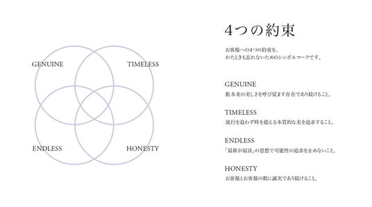 ロゴマークである4つの輪はサイエンスによって活性化された細胞を表現し、同時にお客様への「4つの約束」を体現しております。
