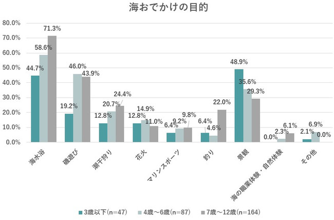 海おでかけの目的は「海水浴」「磯遊び」「景観」が年齢問わず多数