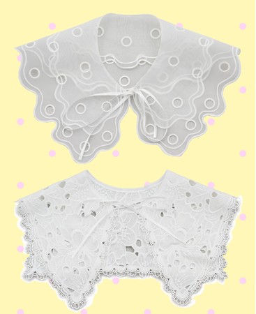 周りと差をつける個性的なコーディネートにしたい方におすすめの“付け襟”はビッグカラー仕様で小顔見えするデザインとフェミニンな印象を演出するレースやオーガンジーが特長。カジュアルなファッションにも取り入れられるので華やかにしたいシーンからデイリーのコーディネートまで合わせやすい小物です。