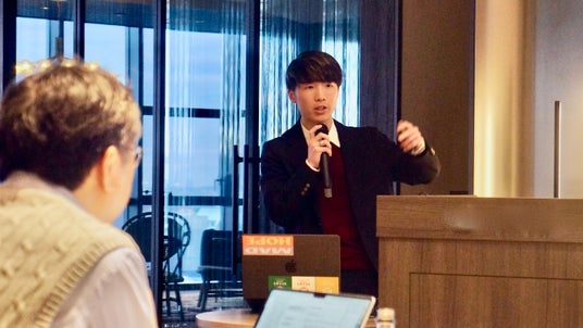 約80団体の事前登録応募があり、書類審査を経て、ファイナリスト7名が最終プレゼンに挑みました。慶應義塾大学教授 安宅和人氏、東京大学 FoundXディレクター 馬田隆明氏、一般社団法人コード・フォー・ジャパン 代表理事 関治之氏の3名の審査員による審査の結果、人口5人の島での実体験に基づき「生存戦略としての半透膜モデル」を提唱した梅本将輝氏が大賞を受賞しました。