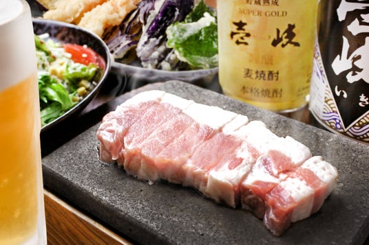 長崎芳寿豚の溶岩焼き 880円極上豚「長崎芳寿豚(ほうじゅとん)」を豪快に溶岩焼きに。豚肉特有の臭みを感じないふっくらジューシーな味わいです。