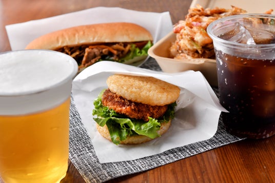 ハムカツライスバーガー(イベント時テイクアウトのみ)480円サクッと肉厚なハムカツをライスバンズで挟んだオリジナルバーガー。