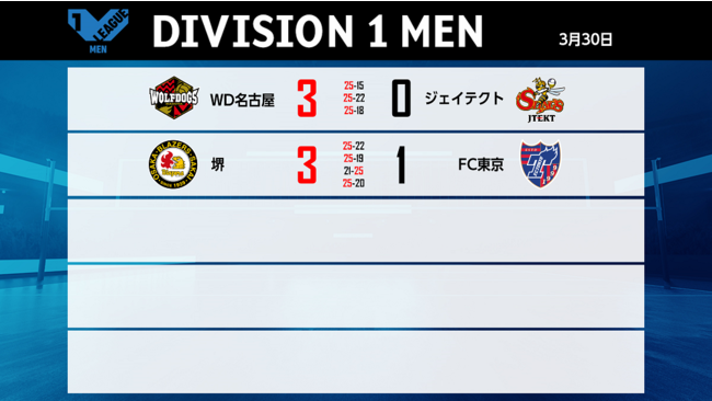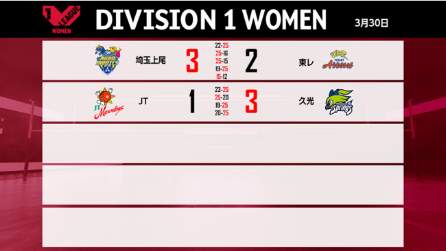 バレーボール国内最高峰リーグ V.LEAGUE【3月30日の試合結果】