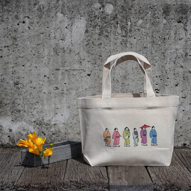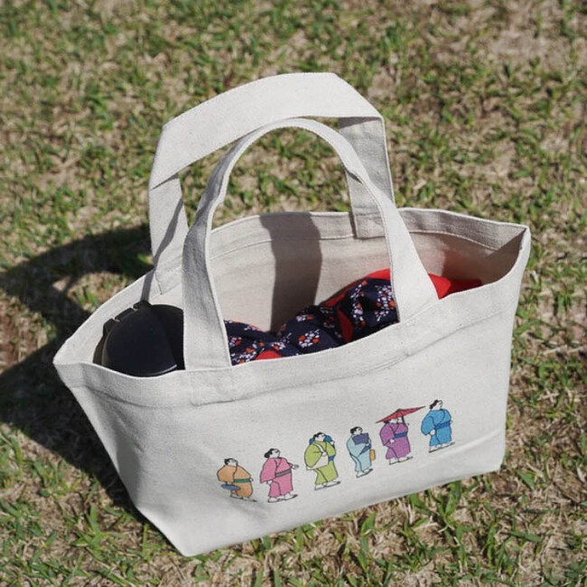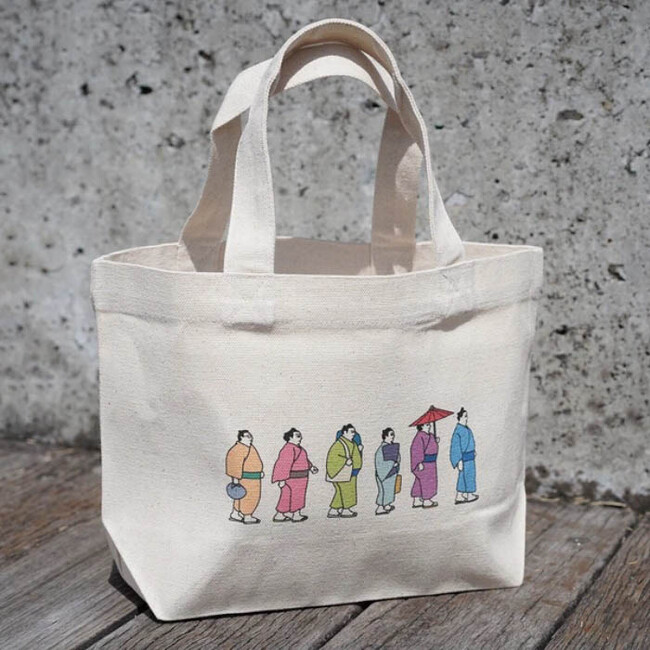 浴衣姿の力士の場所入りがかわいいイラストのトートバッグになりました。