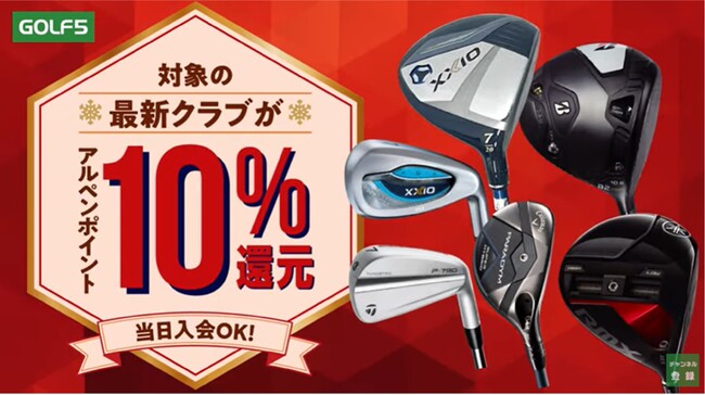 ・対象のゴルフクラブ、アルペンポイント10%還元