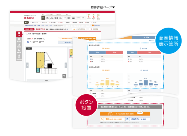 <物件詳細ページにある商圏情報の下に「もっと詳しい商圏情報が欲しい」ボタンを設置>