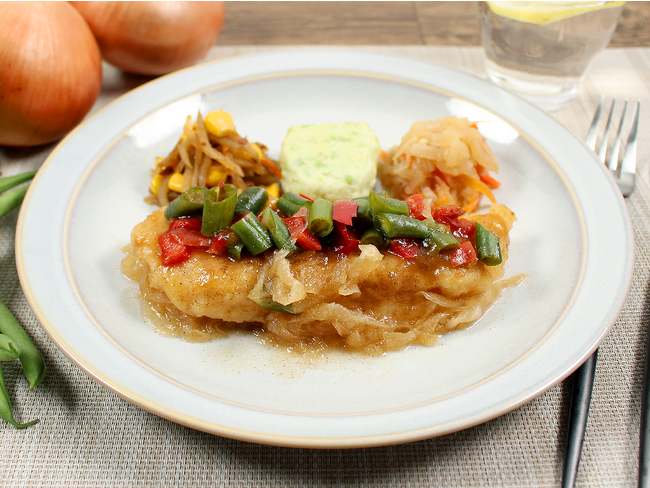 ふわっと揚げた白身魚に、甘辛い醤油だれとお出汁を合わせた山椒あんで仕上げました。細かく刻んだいんげんと赤ピーマンにさわやかな香りが特徴の山椒を贅沢に使用しておりますので、香りも合わせてお楽しみいただけます。