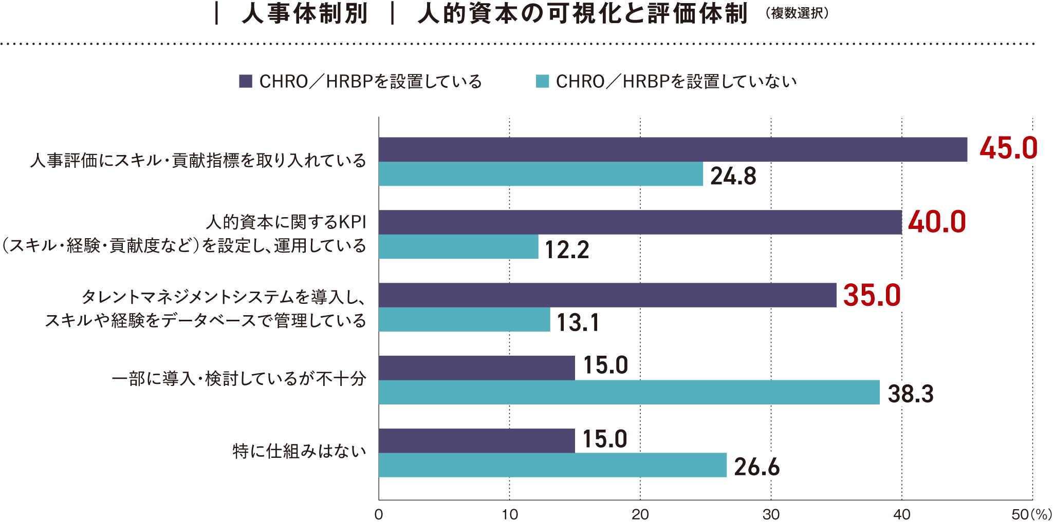 (3)CHRO/HRBPを設置している企業では、人的資本の可視化と評価体制が高水準という結果に。