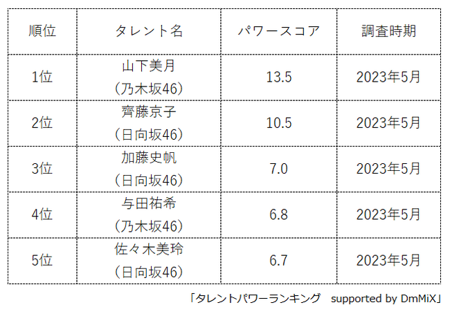 「タレントパワーランキング supported by DmMiX」である旨を明記