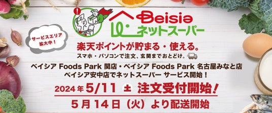 株式会社ベイシア(本社:群馬県前橋市、代表取締役社長:相木孝仁)は、楽天グループ株式会社(以下「楽天」)が提供するネットスーパーのプラットフォーム「楽天全国スーパー」内に出店する「ベイシアネットスーパー」において、ベイシア Foods Park関店・名古屋みなと店、ベイシア安中店からの配送を2024年5月14日(火)より開始いたします。「ベイシアネットスーパー」は開業から約2年で計44店舗の展開となります。