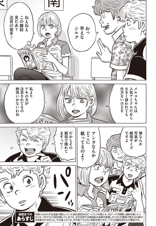 近代麻雀:毎月1日発売の麻雀漫画専門誌。『老境博徒伝SOGA』、『むこうぶち』とスピンオフ作品『お疲れ様です後堂さん』、『ピークアウト』、『追憶のM Mたちの人生を紐解く』など麻雀好きの心を熱くする漫画多数連載。さらに佐々木寿人、小林剛などMリーガーのコラム多数連載中。