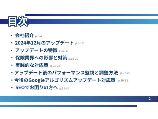本レポートでは、今回のGoogleアルゴリズムアップデートが保険業界に与える影響と、それに対する実践的な対応策について詳しく解説しています。