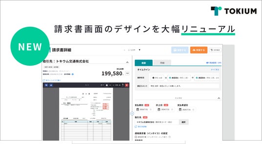 経費精算や請求書処理などの支出管理にまつわるクラウドサービスを提供する株式会社TOKIUM(本社:東京都中央区、代表取締役:黒崎 賢一、以下「TOKIUM」)は、請求書受領クラウド「TOKIUMインボイス」の請求書画面のデザインを大幅にリニューアルしたことをお知らせいたします。