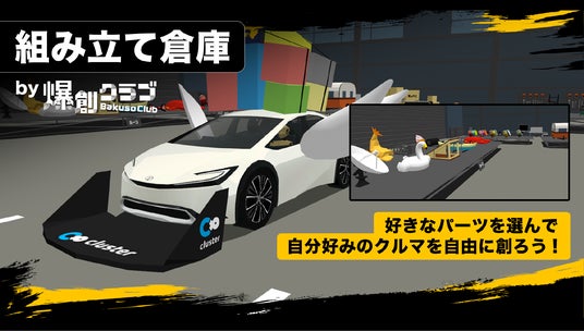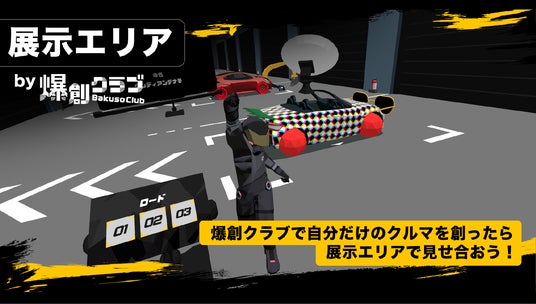 「爆創クラブ」は、バーチャル空間内で自分だけのクルマを“走って、創って、共有する”が楽しめる新体験のメタバースゲームです。