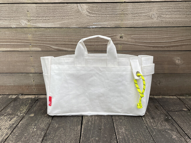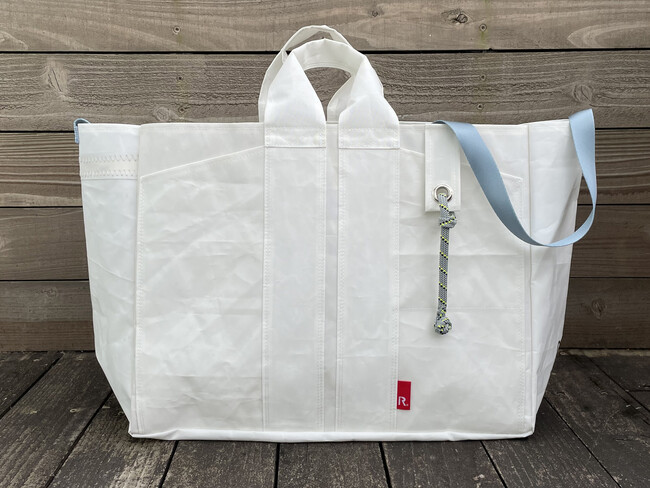 太陽と風を受け大海原を疾走してきたヨットの使用済みセイル(帆)を、日常に気軽に取り入れることができるトートバッグにアップサイクル。新たなプロダクトとして息吹を吹き込むことで、海を愛する人たちの想いを未来へ繋げます。海風にさらされてきた風合いは、全て一点もの。世界にひとつのデザインとしてお楽しみいただけます。ROOTOTEの専門店ROOTOTE GALLERY 二子玉川店などで、10月以降順次販売いたします。