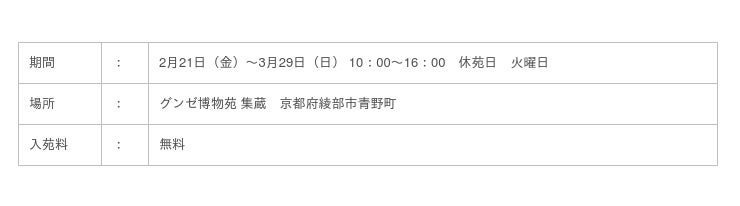 (土日祝) TEL:0773-43-1050/グンゼ博物苑