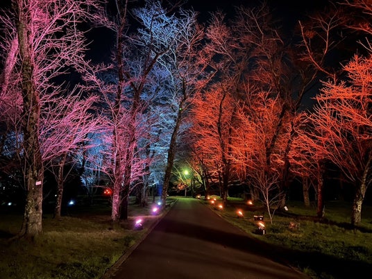 桜の開花状況に併せ、ライトアップ期間を延長します。
