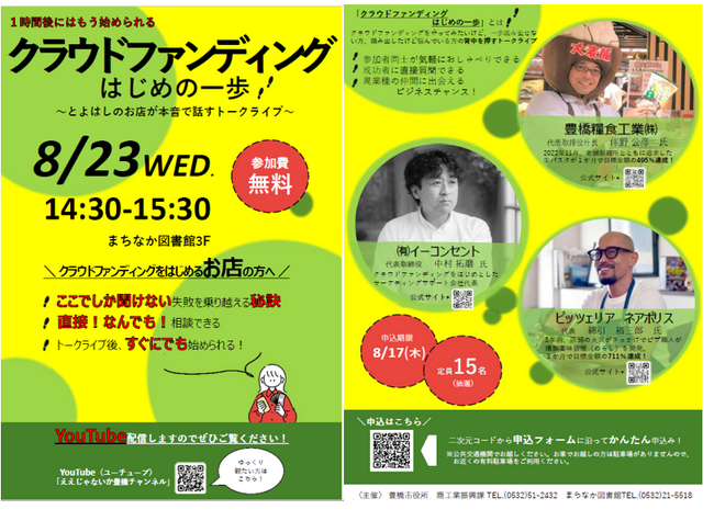 豊橋市が主催のクラウドファンディングに関するトークライブは初の試みです!