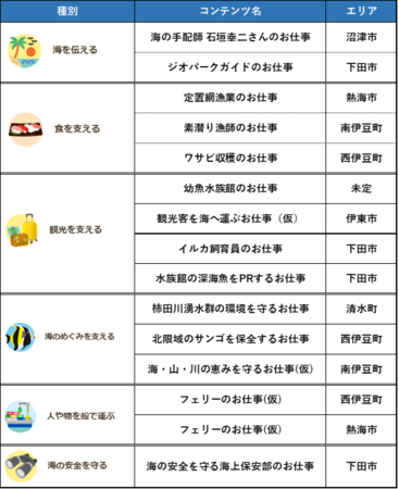 海に関わる6つのテーマに沿った全15本のお仕事体験を伊豆半島各地で実施します。