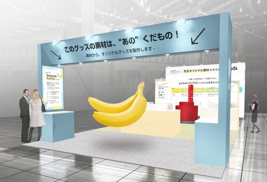 当日、展示会場で目を引くのは高さ134cm、幅180cm、奥行き97cmの巨大なバナナ模型。実は近年、捨てられるはずのバナナの茎を再利用したBANANA-CLOTH(R)が注目を集めています。その柔らかな質感とナチュラルな風合いが、他にはない個性的な仕上がりになると好評です。このコーナーではBANANA-CLOTH(R)をはじめ、20種類以上のエコ素材を取り揃え。環境配慮とデザイン性を両立した製品を展示します。