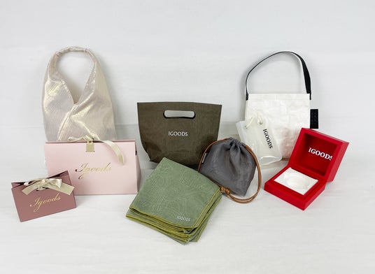 過去3,000社以上の企業様のオリジナルグッズ制作を担ってきたアイグッズ。本展示会では、「生地」「形状」「デザイン」 の3カテゴリに分け、実際のグッズ制作の流れに沿って、全65種の梱包・資材を展示します。