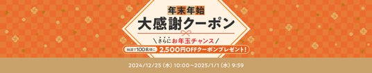 auコマース&ライフは、運営する総合ショッピングサイト「au PAY マーケット」において、2024年12月25日から2025年1月1日まで、今年1年の感謝を込めて、年末年始のお買い物でおトクにお買い物いただける「年末年始 大感謝クーポン(以下、本特典)」を配布します。