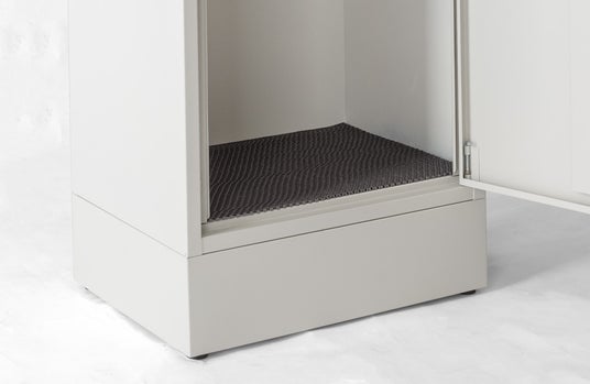 本製品は大切な荷物を守るために防水仕様となっており、ドアの隙間から雨水の侵入を防ぐ設計になっており、ウエイトベースがあることで、浸水対策にもなっております。