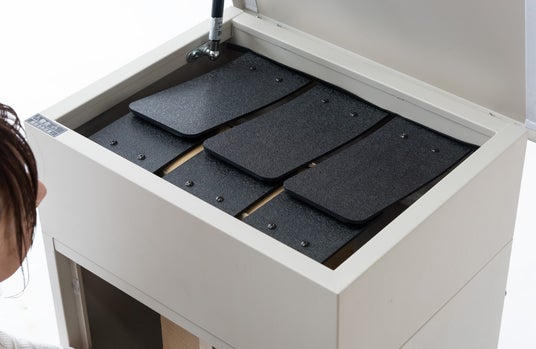 従来の複数投函可能な上部投函タイプの宅配ボックスは受け口に収まるサイズの荷物しか投函することができず、受け口のサイズを超える荷物は下側の扉から1度しか投函ができませんでした。今回発売開始した『押し込み式宅配ボックス』の上部投函口には独自開発の「フラップ構造」を採用することで、受け口のサイズを超える大きな荷物を複数投函できるようになっています。