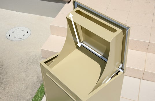 また受け口のフラップ板は押し込む方向とは反対方向へ開くことができないため、宅配ボックス内部の荷物の盗難を防ぎます。(※盗難を確実に阻止するものではありません。)また上部から荷物を投函する際の衝撃を和らげる衝撃吸収シートも付属しております。