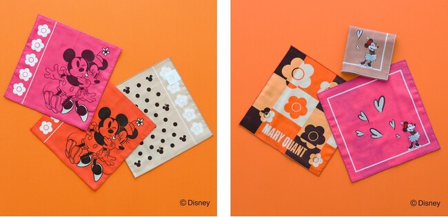 人気の高いタオルハンカチはラメをふんだんに使った華やかな一枚や、ミッキーマウスとミニーマウスのアートを大胆に使用した一枚など、様々な表情のデザインを揃えています。本企画ならではのマリークヮントのアイコン“デイジー”とミッキーマウス、ミニーマウスのアートの組み合わせをポップでキュートな雰囲気に仕上げました。