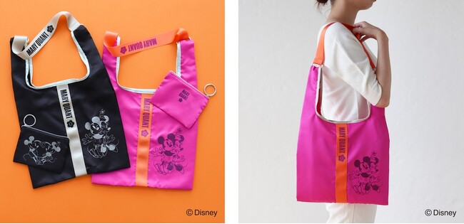 A4サイズの書類などが入る普段使いにおすすめのエコバッグです。ミッキーマウスとミニーマウスのデザインをグリッタープリントで華やかに仕上げました。付属のストラップを使用すれば肩掛けも可能になります。専用のケース付きで、ケースの引き手をお手持ちのバッグに取り付けてバッグチャームのように持ち歩くこともできます。