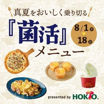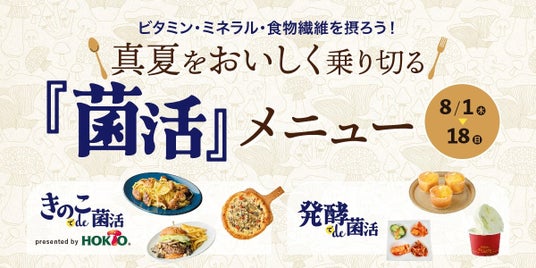 『きのこde菌活メニュー』では、きのこメーカー大手のホクト(株)の協賛のもと、ホクトプレミアム 霜降りひらたけや一番採り生どんこをはじめとする6種類のきのこを使用したオリジナルメニューをご用意いたします。また、『発酵de菌活メニュー』では、ヨーグルト、クリームチーズ、キムチ、カカオ豆などの食品を使った様々な発酵食品を使用したメニューをご用意しました。