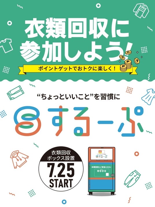 7月25日(木)~9月30日(月)の期間、ランドマークプラザ内に、衣類回収サービスの「するーぷ」衣類回収ボックスを設置いたします。