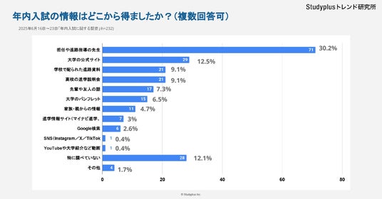 スタディプラス株式会社(本社:東京都千代田区、代表取締役:廣瀬高志、以下スタディプラス)のStudyplusトレンド研究所は、2025年6月16日(月)から6月23日(月)にかけて学習管理アプリ「Studyplus」上で全国の高校3年生を対象に「年内入試に関するアンケート」を実施、232名から回答を得ましたのでご報告いたします。