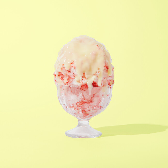 特許を取得した特別な製造方法でフレッシュな苺をまるごと氷に閉じ込め、一気に氷削器で削ることでふわふわのくちどけが楽しめます。
