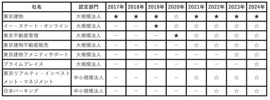 ★:健康経営優良法人ホワイト500認定、☆:健康経営優良法人認定