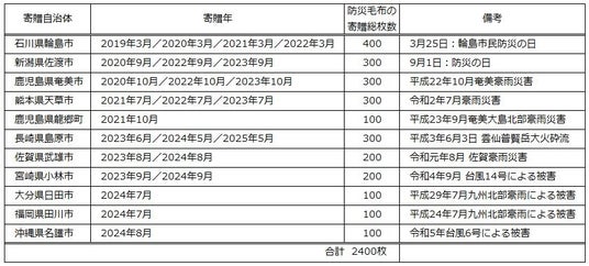 青山商事株式会社(本社:広島県福山市/代表取締役社長:遠藤 泰三)は、大分県日田市へ「防災毛布(災害支援用リサイクル毛布)」100枚を寄贈いたします。これに伴い、7月9日(水)に日田市役所にて贈呈式を開催します。当社は2018年より、お客様から回収した不要衣類の一部をリサイクルし、防災毛布を作製しています。2019年から自治体の災害対策を支援する取組を開始し、これまでに国内で計11箇所・総数2400枚を寄贈しており、日田市へは2024年7月に続き2度目の寄贈となります。