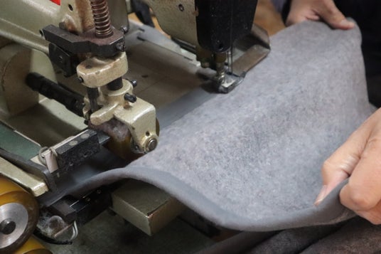 ・洗浄した反物を起毛させ毛先を揃えます。反物の端にパイピング仕上げを施して毛布が完成します。