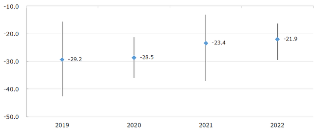 また、対象の5社のNPS(R)平均は-21.9ポイントとなり、前年の調査からは1.5ポイント向上しました。また調査開始時の2019年の結果と比較しても、7.3ポイント向上しており、業界全体のNPS(R)平均が年々向上している傾向となっています。