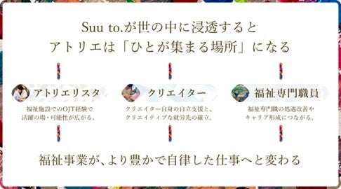 noteは「世の中を精神的に豊かに」をビジョンに掲げ、児童福祉施設「unico軽井沢」とアトリエを運営しています。「unico軽井沢」では児童の内発的動機を促す「unicoメソッド」を実践、アトリエではアートや福祉の専門知識を持つ支援員がクリエイティブ活動を支援しています。今後は、これまで培った福祉とアートの現場力を重ね合わせ、才能がありながらも環境や制度によってその力を十分に発揮できなかった人たちに光を当てるアートブランド「Suu to.」を展開し、居場所づくりや就労機会、持続可能な福祉事業のエコシステムの創出を目指します。