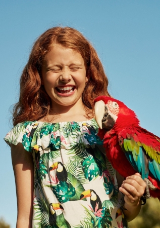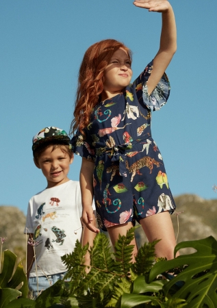 「私の作品が服のコレクションに使われるのは初めてのことなので、このH&Mとのコラボレーションはとても楽しかったです。[私は子どもの頃、野生動物や植物に魅了されていたので、このコレクションがキッズ向けであることも本当に嬉しく思います。子どもたちが私の作品を楽しんでくれて、さらに動物や植物に興味を持つきっかけになったら素敵なことだと思います。私の作品は自然の世界からインスピレーションを得ていて、その大半は現実に存在するものですが、架空のものを取り入れるのも大好きです。この5年ほどは、ジャングルの景色にフィーカスしてきました。幸せや明るさ、またちょっとした現実逃避感に満ちていて、とても興味深いと思います。」(アーティスト、ケイト・モーガン)