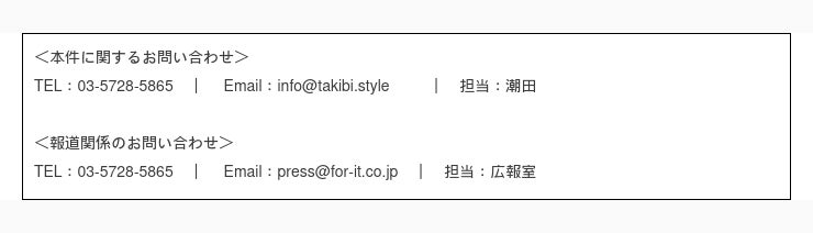 TAKIBI media:https://www.takibi-reservation.style/media/