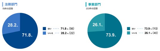 - 回答者数 :231名(法務部門:78名、事業部門:153名)