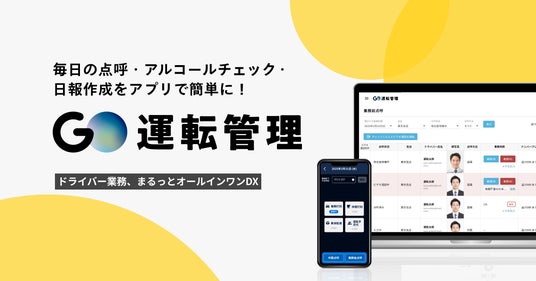 No.1*タクシーアプリ『GO』や次世代AIドラレコサービス『DRIVE CHART』を展開するGO株式会社(本社:東京都港区、代表取締役社長:中島 宏)は、業務用車両における点呼・アルコールチェック・日報作成をスマートフォンアプリで簡単にできる新サービス『GO運転管理』を今夏より提供開始予定です。