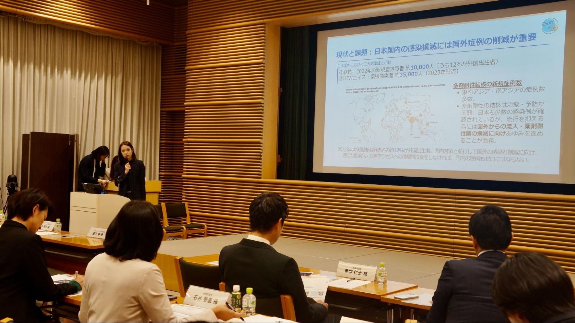 海外支援について、それが日本の国益やビジネスに還元されるという視点での発信が不可欠。党内勉強会の開催や、現地のニーズを日本企業につなぐ仕組み作り、NPOとの連携などを通じて、国会内でも国際保健への理解を広げていく。