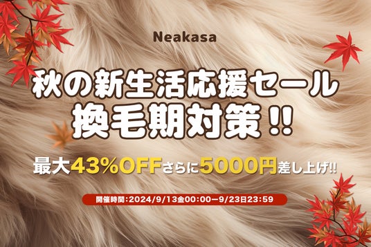 秋の訪れとともに、新しい季節を迎える皆様へ、Neakasaは「秋の新生活応援セール」を開催いたします。ペットとの暮らしをもっと快適にするためのアイテムを、特別価格でご提供するこのチャンスをお見逃しなく!