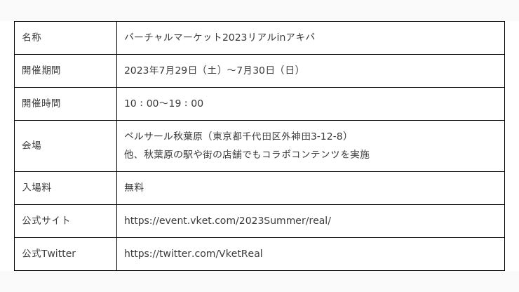 【バーチャルマーケット2023リアルinアキバ 概要】