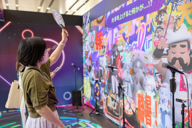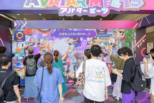通りに面した位置には大画面のモニターの中にVR空間を映し出した「AVATAR MEETS(アバターミーツ)」のブースを設置。特別なマーカーを付けた状態でモニターの前に立つと自分自身もアバターとなってモニターに映し出され、VR空間内にいる他者のアバターとコミュニケーションを取ることができる本コンテンツでは、お子様や海外の方など、普段あまりメタバースに触れる機会のない方も大勢の方に楽しんでいただきました。