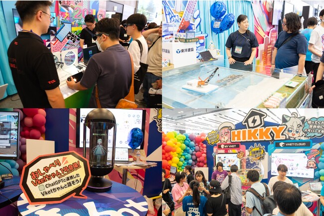 各ブースでは各社のメタバース会場や商品技術を実際に体験できる他、JRAでは実際に乗れるリアルな“馬ロボット”の展示や、焼津市は特産品のリアル販売、東洋建設は小型の造波実験装置の展示をするなど、各社趣向を凝らしたブースを展開し、たくさんの方にご体験いただき終日大盛況でした。