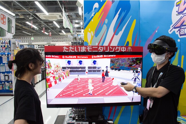 リアルの「ビックカメラAKIBA」の一画に特設コーナーを設け、バーチャルマーケットの企業出展会場の1つパラリアル秋葉原上にあるビックカメラAKIBAの様子を映すモニターを設置し、担当者がリアルとメタバースとをシームレスに行き来しながら同時に接客する"ハイブリッド接客”を実施。